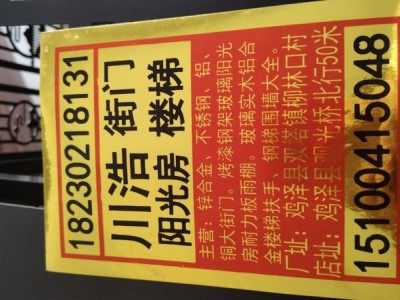 川浩楼梯街门阳光房厂承接各款式街门楼梯扶手阳光房!店址:鸡泽县观光桥北行50米川浩楼梯街门阳光房