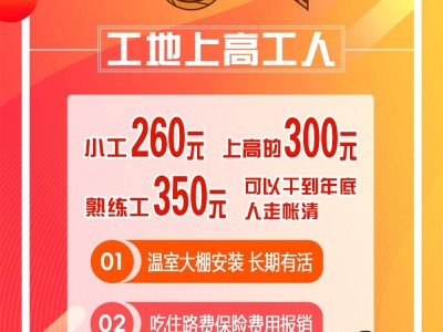 新疆工地20万平米温室大棚长期找安装工,小工260,可以上高300,熟练工350,可以小包,长期有活,可以干到年底,吃住路费保险费用报销,人走帐清,想来的联系。