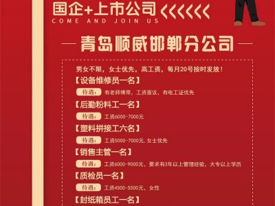 (国企+上市公司)青岛顺威邯郸分公司招聘啦