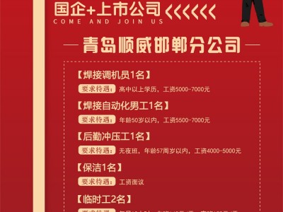 岗位一:焊接调机员1名,要求高中以上学历,工资5000~7000元;