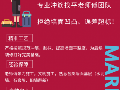 房屋室内装修专业冲筋找平施工老师傅手艺,墙面平整一步到位! 专业冲筋找平老师傅团队,多年施工经验,拒绝墙面凹凸、误差超标! 墙面要平整,找对师傅是关键!电话预约上门量房!!