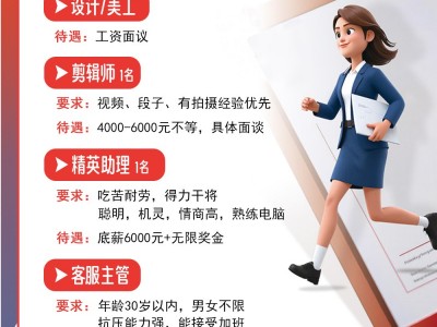1、精英助理得力干将,精英助理一名,吃苦耐劳,底薪6000➕无限奖金