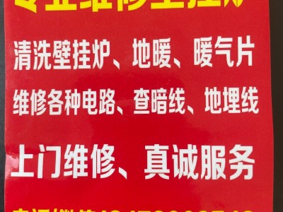 专业维修家庭工厂各种电路,查漏电、暗线地埋线!专业维修壁挂炉,清洗壁挂炉、地暖、暖气片!24小时服务热线