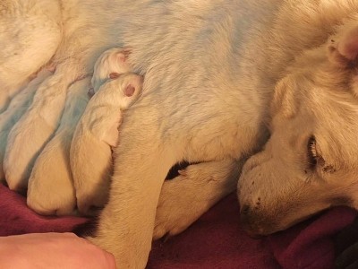 自家繁殖白德牧瑞士牧羊犬,刚下小狗接受预定了瑞士牧羊犬白德牧刚出生的小狗狗,带血统公母都有现在接受预定了,健康活泼,毛色很漂亮,奶量足,吃奶状态很棒!现在还在吃奶期,没断奶,适合喜欢小动物的朋友~