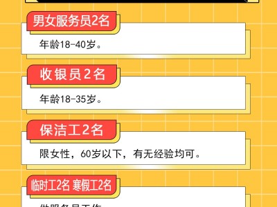 2、收银员2名、年龄18-35岁。
