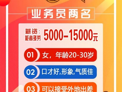 高薪诚邀业务精英女,年龄20-35,口才好,形象好,气质佳,可以接受外地出差,有经验的优先考虑。薪资保底6000,平均薪资15000元左右,能者多劳,上不封顶。地址:鸡泽县娇乡一品南区附近