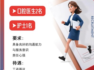 安康口腔门诊诚聘口腔医生2名,护士1名,要求:具备良好的沟通能力与服务意识,责任心强,工资面议。