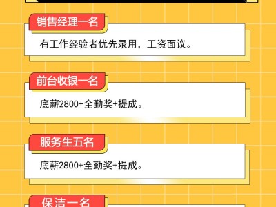 3、服务生5名,底薪2800+全勤奖+提成。