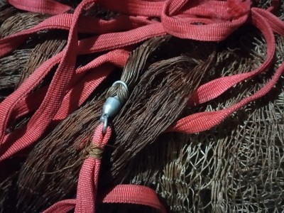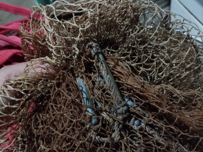 出一条手工小眼撒网,尼龙线的,十斤鱼尾铅坠,就下过几次水没咋玩,挂了个口子已修好,有人要的话给个铅坠钱拿走