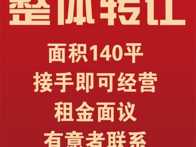 门市转让,整体转让,面积140平,接手即可经营,租金面议,有意者联系。